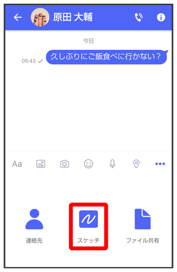 をタップするとスケッチが添付されたメッセージが送信されます。