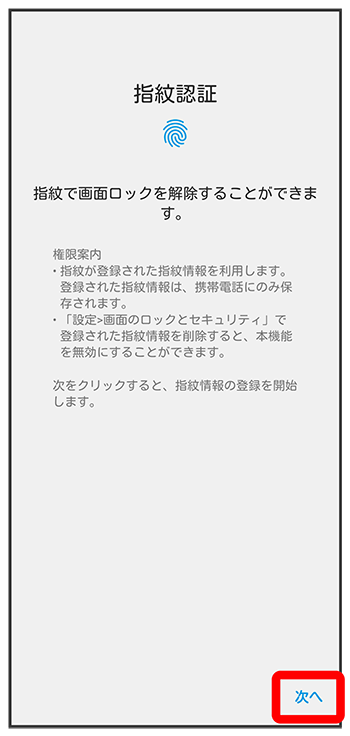 - 指紋センサーに指を触れたまま指紋の登録や認証を開始すると、起動できない場合があります。指を離し、再度操作してください。