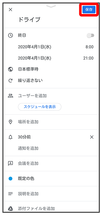 が表示されます。ステータスバーを下にドラッグしてカレンダーの通知をタップすると、予定の詳細画面が表示されます。