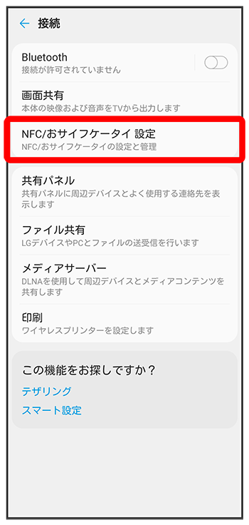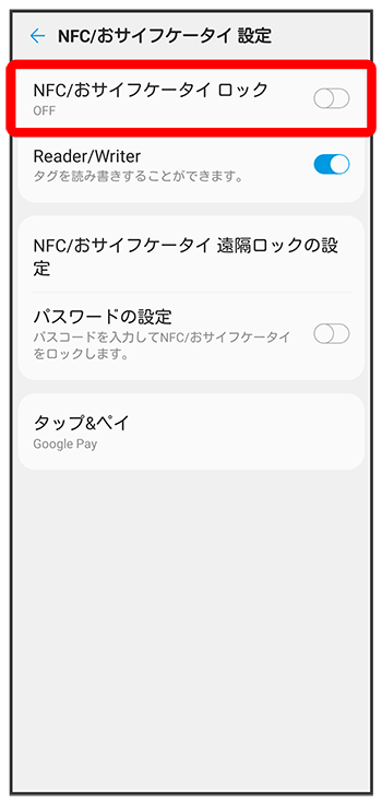 NFC/おサイフケータイ®設定画面で操作用暗証番号を入力(- が有効のときに設定できます。