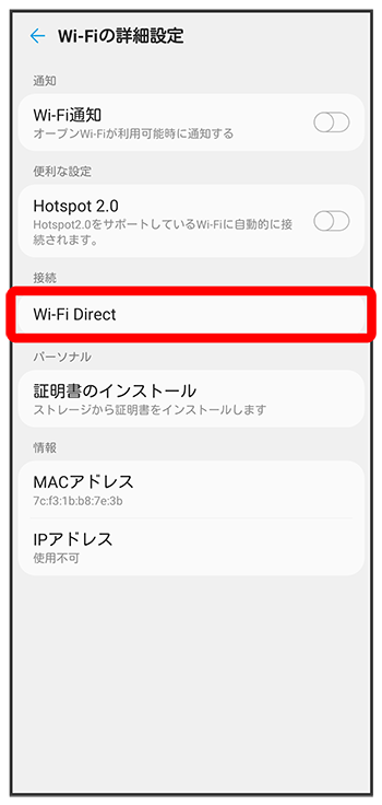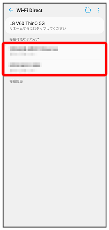 - 「接続可能なデバイス」欄に、近くにあるWi-Fi Direct機器が表示されます。