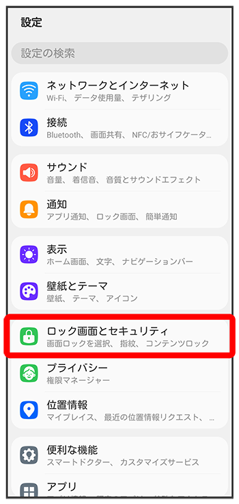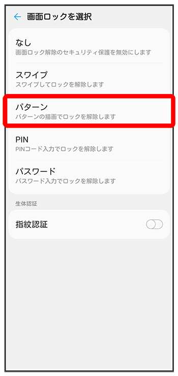 - 変更前の画面ロック解除方法がまたは以外のときは、をタップしたあとロックを解除する操作が必要です。