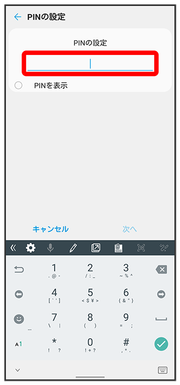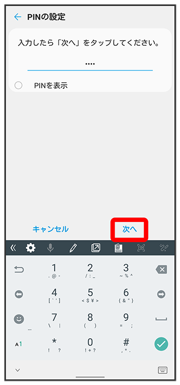 - をタップすると、入力したPINを確認できます(