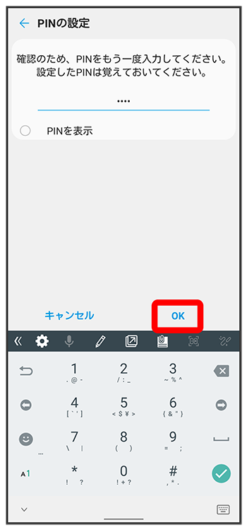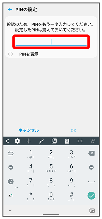新しいPINを再度入力