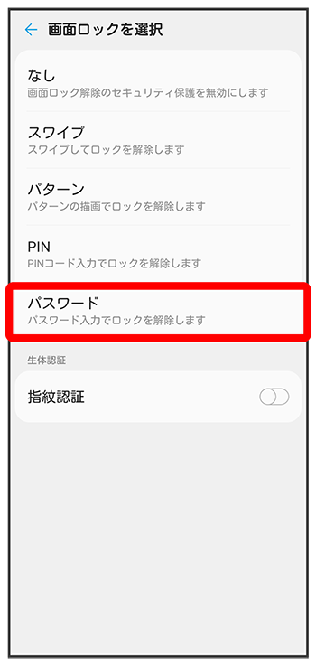 - 変更前の画面ロック解除方法がまたは以外のときは、をタップしたあとロックを解除する操作が必要です。