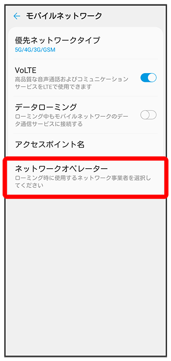 - 適切な通信事業者に自動的に接続する場合は、通信事業者画面でをタップします。