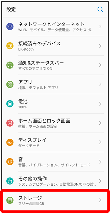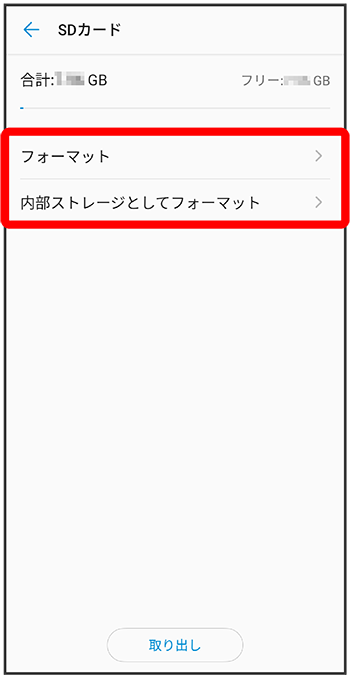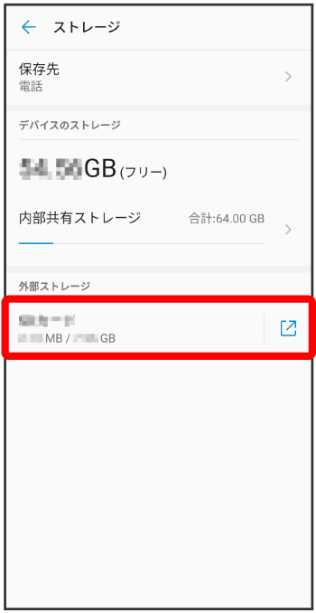 - SDカードを内部ストレージとして使用する場合は、外部ストレージとして使用する場合はをタップします。