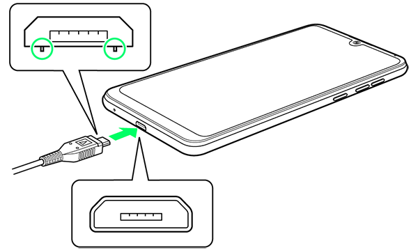 別売のACアダプタ(microUSB 1.0A)[ZSDBAF]1、またはACアダプタ(microUSB Quick Charge™ 2.0対応)[ZSDBA4]2をお使いください。その他の周辺機器についてはソフトバンクのウェブサイトを参照してください。
