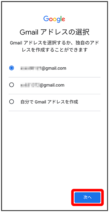 Gmail アドレスを選択
