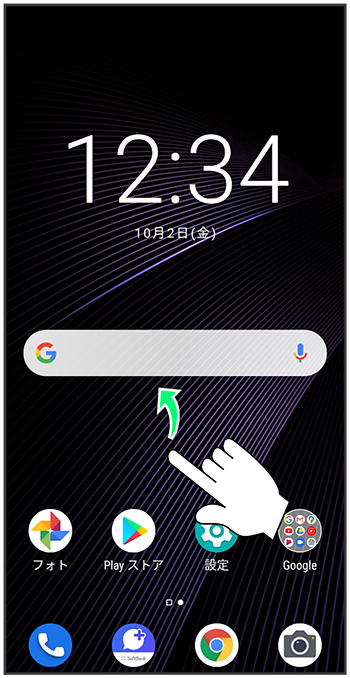ホーム画面を上にフリック/スワイプ