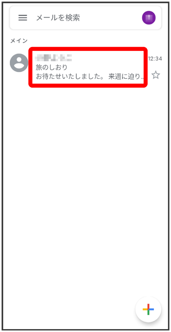 メール一覧画面で未読にするメールをロングタッチメールを削除する