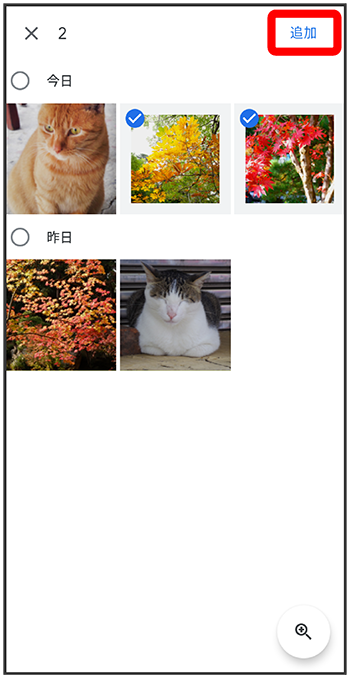 )が切り替わります。 - 写真/動画は複数選択することもできます。