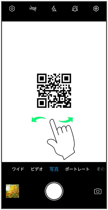画面を左右にフリック/スワイプして「写真」撮影画面を表示