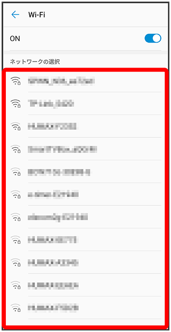Wi-Fi設定画面で- をタップするたびに、ON(