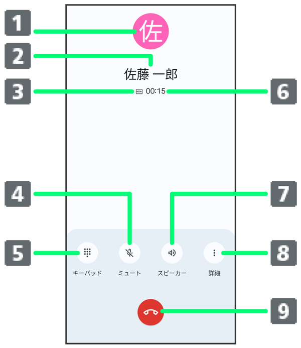・:別の相手に電話をかけます。 - 通話を終了します。