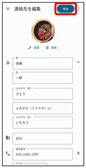 - 連絡先に画像が設定されている場合は、設定されている画像の下に/と表示されます。