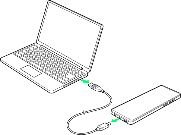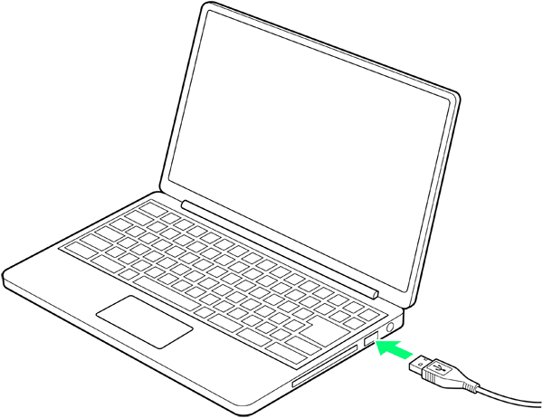 パソコンのUSB端子に、PC接続用USB Type-CケーブルのUSBプラグを差し込む