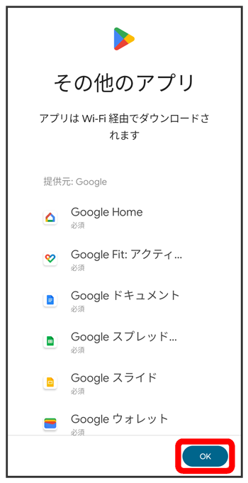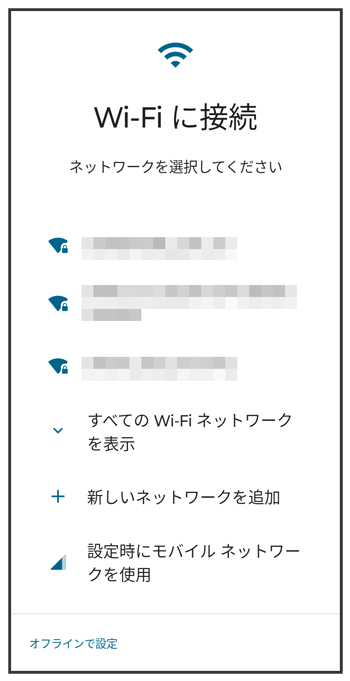 - Wi-Fiの設定を省略するときは、/を選択します。以降は、画面の指示に従って操作してください。