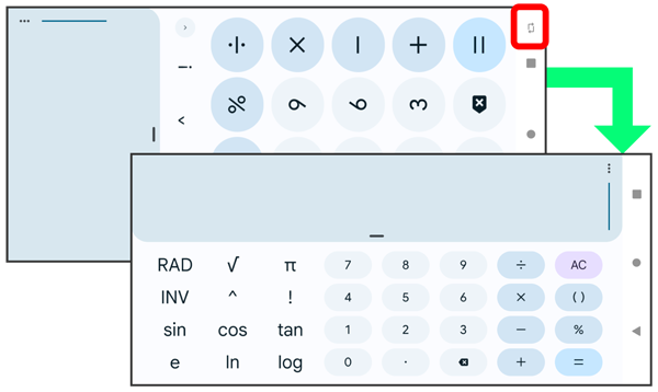「画面の自動回転」を有効にしている場合は、本機を横向きに回転させると、自動的に表示画面も横表示に切り替わります。「画面の自動回転」について詳しくは、「ディスプレイ設定」を参照してください。