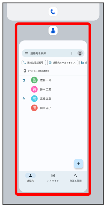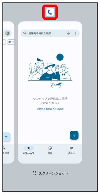 マルチウインドウ画面下に表示されたアプリの履歴一覧から、次に操作したいアプリをタップ