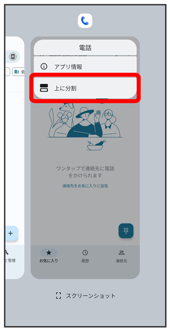 本機の表示画面を分割し、2つのアプリを表示、操作できます。