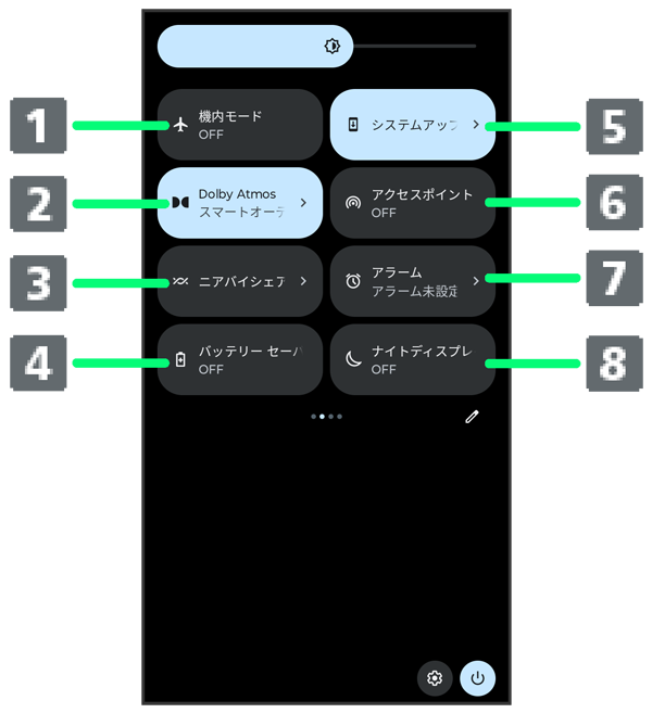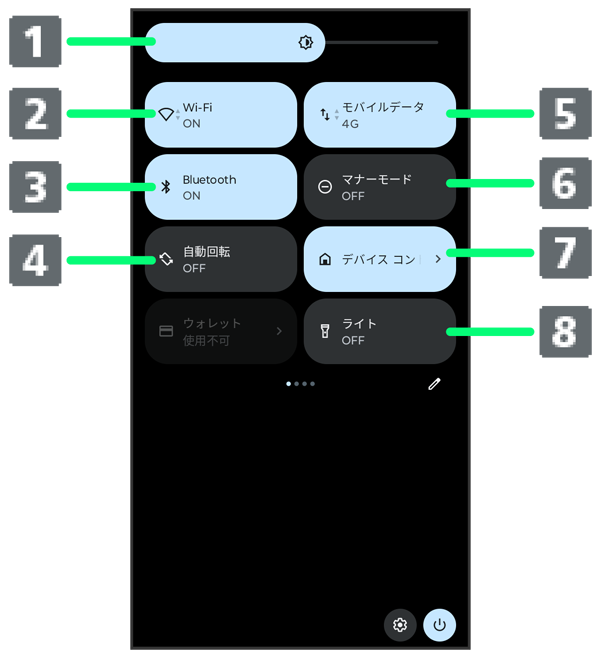 クイック設定パネルの見かた