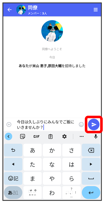 グループメッセージ内で、宛先を指定してメッセージを送信することができます。