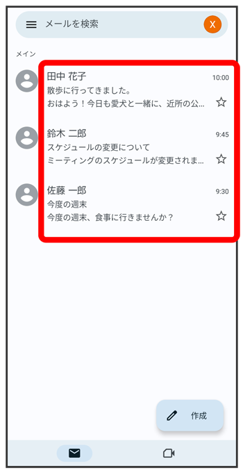 メール一覧画面が表示されます。