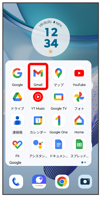 メール一覧画面で、画面を下にフリック