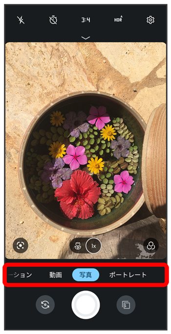 - 撮影モードを左右にドラッグしても切り替えられます。