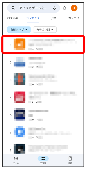 Google Play画面で右上のアカウントアイコンをタップアプリをタップアプリの購入について