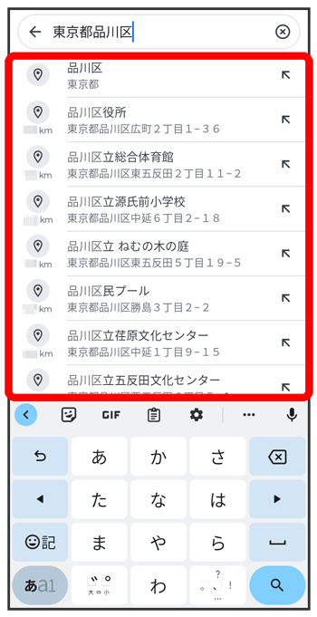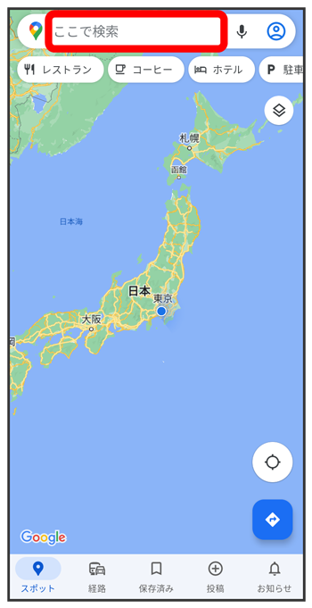 住所や都市、施設名などを入力選択候補から住所や都市、施設名などをタップ