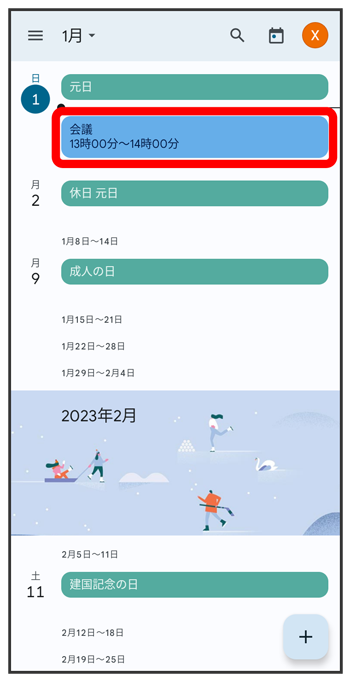 をタップすると、予定を編集できます。 - 予定詳細画面で