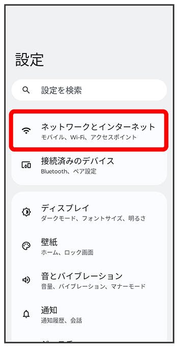 Wi-Fi設定画面が表示されます。