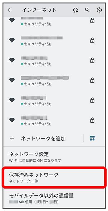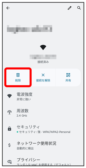 Wi-Fiネットワークの削除が完了します。