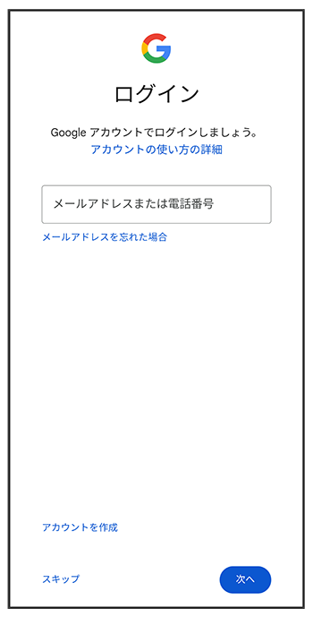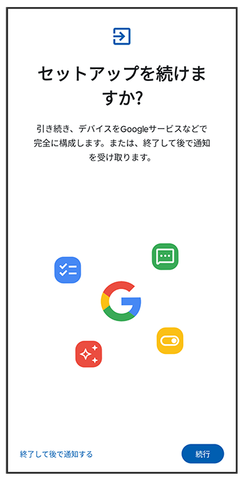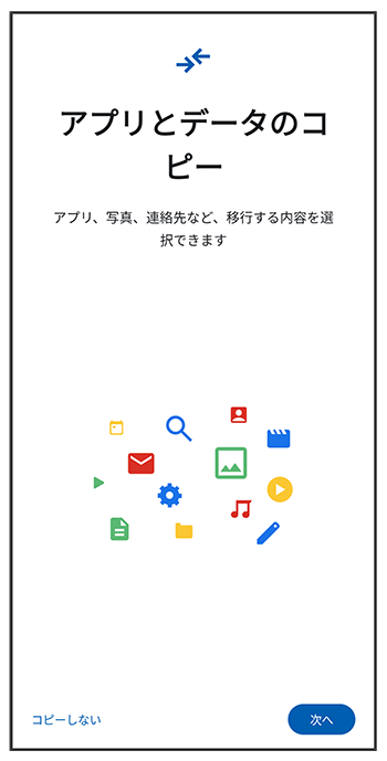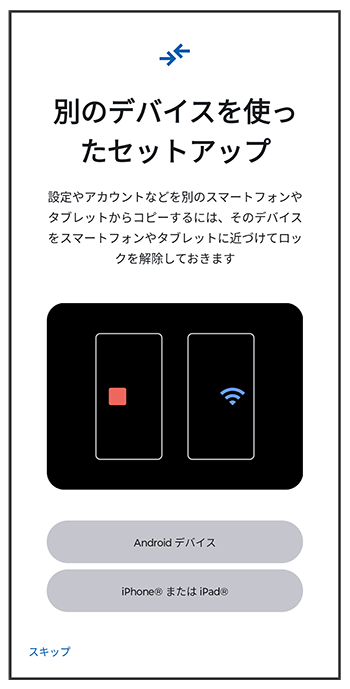 - ほかの端末から設定やアカウントをコピーしないときは、をタップしてください。