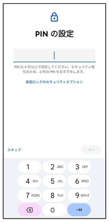 画面の指示に従って、画面ロック/指紋によるロック解除を設定