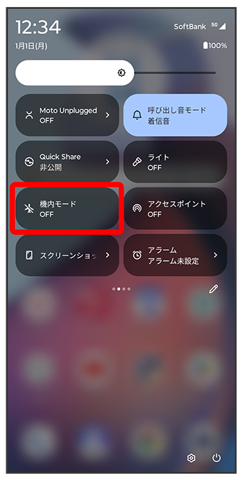 - 機内モードを設定しているときに、同様の操作を再度行うと機内モードが解除されます。