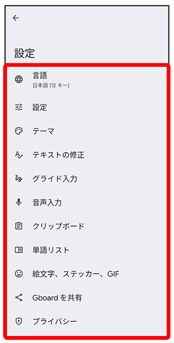 | 評価のお願い | Gboard に満足しているかどうかのアンケートに答えることができます。 |