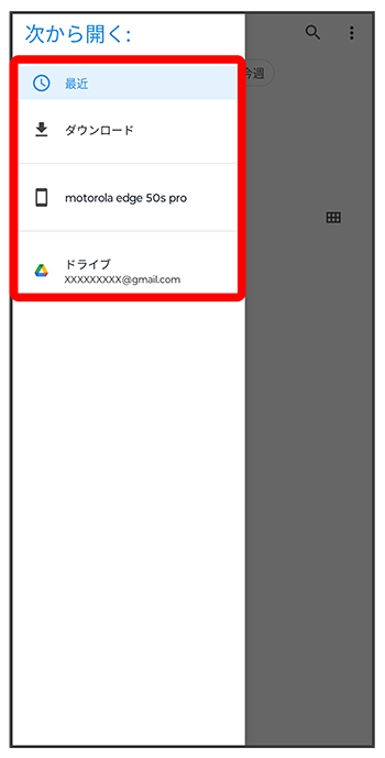- Google ドライブはGoogle アカウントを設定している場合に表示されます。