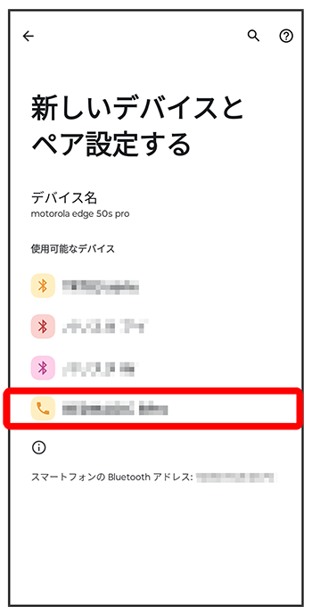 「使用可能なデバイス」欄に、近くにあるBluetooth®機器が表示されます。