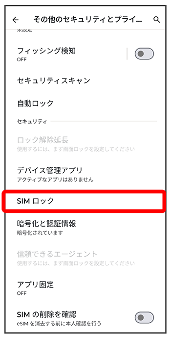 PINコードを有効にすることで、USIMカードを本機に取り付けた状態/eSIMが有効な状態で電源を入れたとき、PINコードを入力する画面を表示するように設定できます。