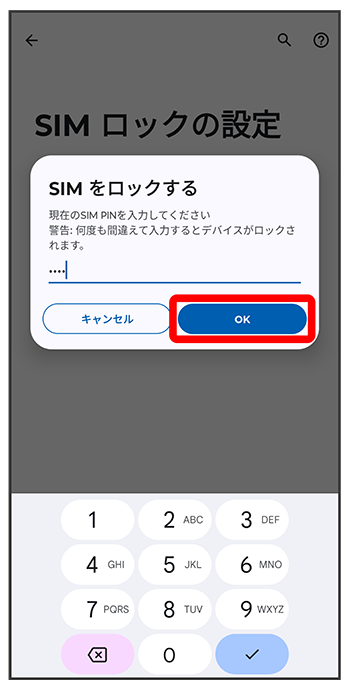 PINコードが有効になります。
