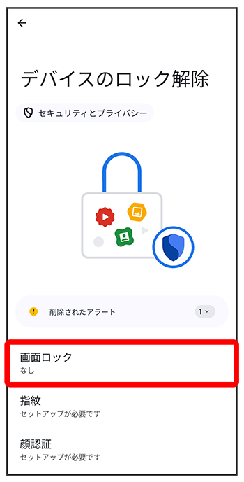 - 変更前の画面ロック解除方法がまたは以外のときは、ロックを解除する操作が必要です。