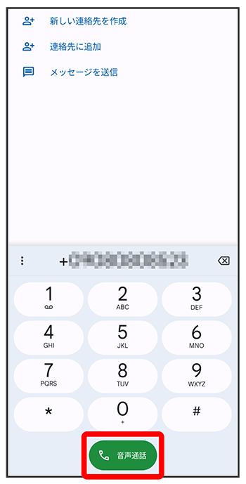 電話番号発信画面が表示されます。