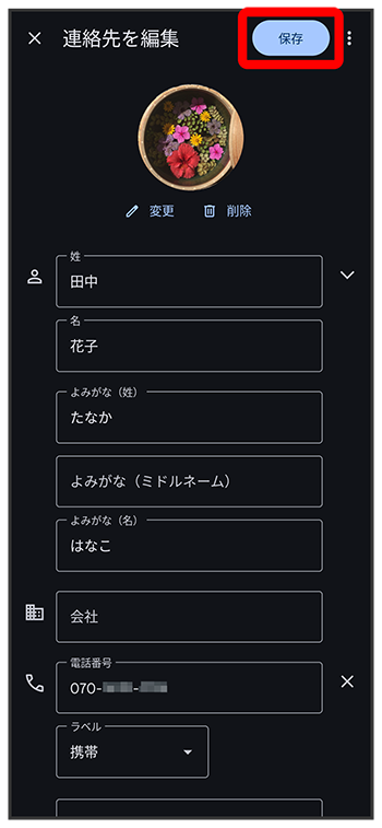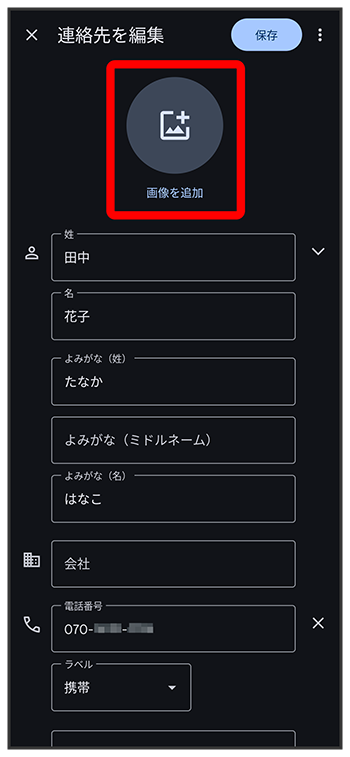 - 連絡先に画像が設定されている場合は、/と表示されます。をタップすると、設定されている画像を削除することができます。