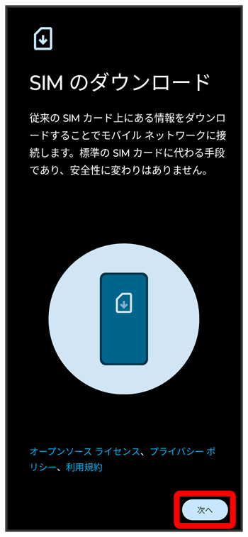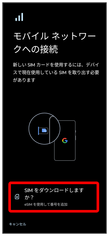 - eSIMを有効にする場合は、をタップします。以降は、画面の指示に従って操作してください。