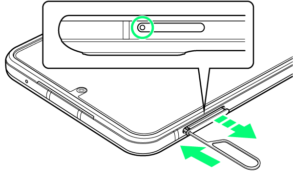 SIM取出し用ピン(試供品)をSIMカードトレイの穴に差し込む
