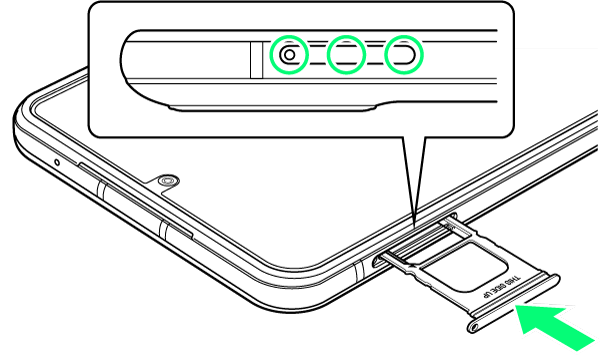 - ○部分をしっかりと押し、本体とSIMカードトレイにすき間がないことを確認してください。
