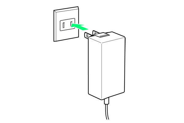 ACアダプタの電源プラグを起こし、コンセントに差し込む